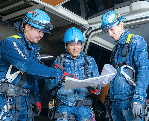 「カーテンウォール施工技能士」という国家資格を持ったプロの監督のもと、難易度の高い外壁(カーテンウォール)の取付を行います。建具取付に特化した専門チームが、安全性とスピードを両立させながら、街のランドマークとなるような大規模建築の顔を創り上げます。
